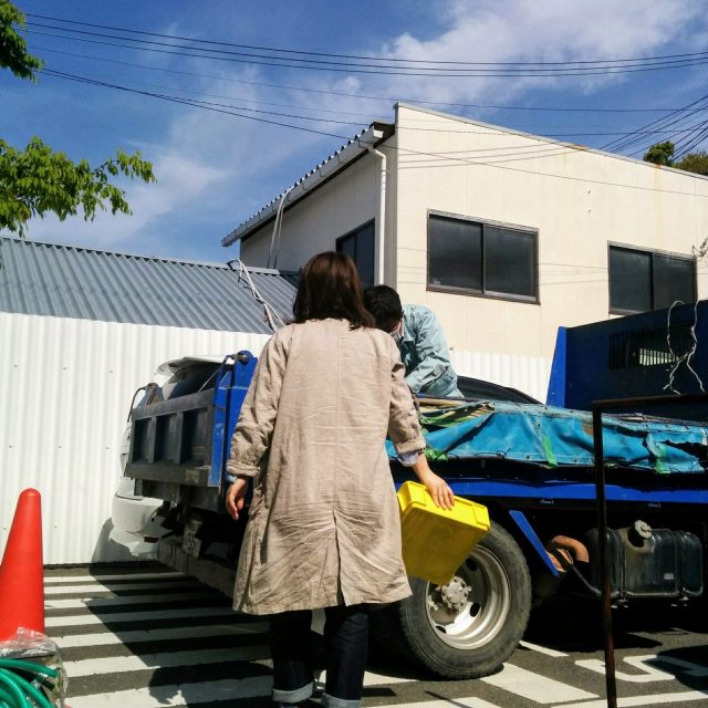 ぐり石を運んできてくれた工務チームリーダーの山本と