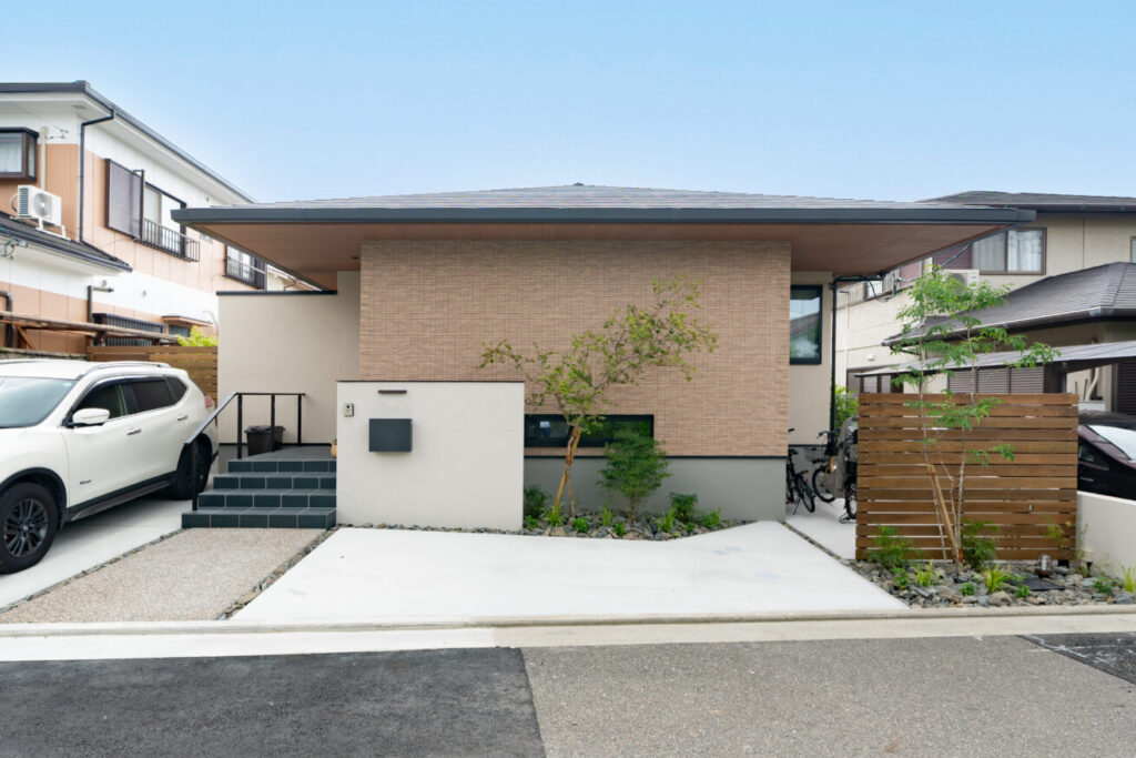 直線美と素材感が調和する、モダンナチュラルな新築外構|大阪